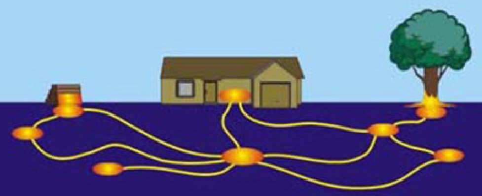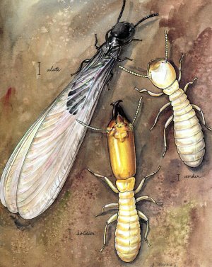 Eastern Subterranean Termite colonies are located under ground to survive freezing temperatures. Workers construct tunnels to their food sources and bring the food back to the rest of the colony. Their tunnels radiate within 100 yard radius from a central colony nest to find food.